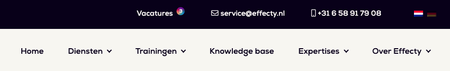 Op onze desktop site wordt geen gebruik gemaakt van een hamburger menu en zijn alle menu-items dus direct zichtbaar.