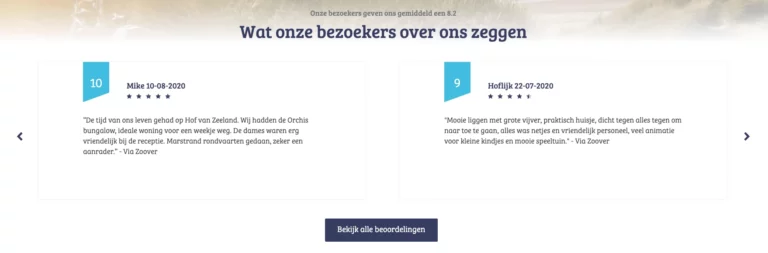 De beoordelingen carousel op de site van Hof van Zeeland laat de beoordelingen niet automatisch wisselen, waardoor onnodige afleiding voorkomen wordt.
