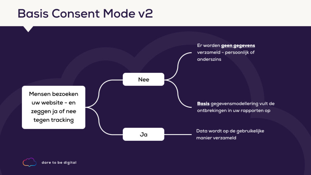 Wenn Nutzer die Zustimmung über das Cookie-Zustimmungsbanner akzeptieren oder verweigern, reagiert der Zustimmungsmodus auf unterschiedliche Weise. Dies hängt auch von der eingestellten Methode ab. Bei der Grundeinstellung werden Daten auf andere Weise erfasst als bei der erweiterten Methode.
