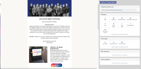 De landingspagina die je gebouwd hebt kun je vervolgens (laten) integreren in je website of gebruiken als speciale bestemmingspagina voor je campagnes. Whatever floats your boat.