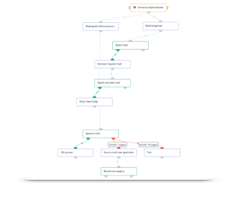 “Beloon” je (potentiële) klant of leads met punten op basis van gedrag. Per voltooide actie verkrijgt deze persoon een X aantal (zelf te definiëren) punten. Wanneer een bepaalde drempel bereikt is, kun je ook automatische acties laten uitvoeren. Denk aan het segmenteren van dit contact, maar ook aan het doorschieten ervan naar je sales tool, CRM-systeem of het sturen van een e-mail aan dit contact. Scheid je meest ‘waardevolle’ (potentiële) klanten van de massa en maak daar het verschil.
