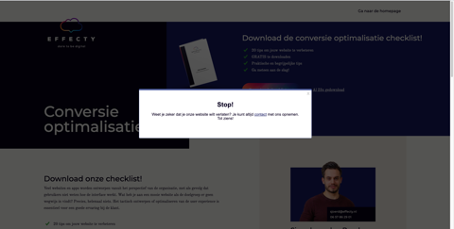 Kleine tip: houd het wel subtiel. Niemand zit te wachten op in-your-face marketing pop-ups. Houd de gebruiksvriendelijkheid en zelfs de SEO van je website in de gaten. Google does not approve!