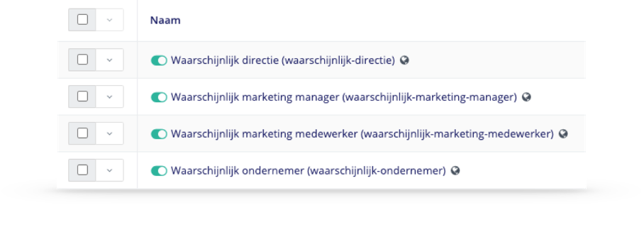Daarnaast heb je ook een scala aan segmentatiemogelijkheden. Je kunt er een oneindige hoeveelheid van aanmaken en ze zelfs op basis van specifieke voorwaarden automatisch laten vullen. Denk bijvoorbeeld aan een bepaald gedrag op je website, leadscore of profieleigenschappen.